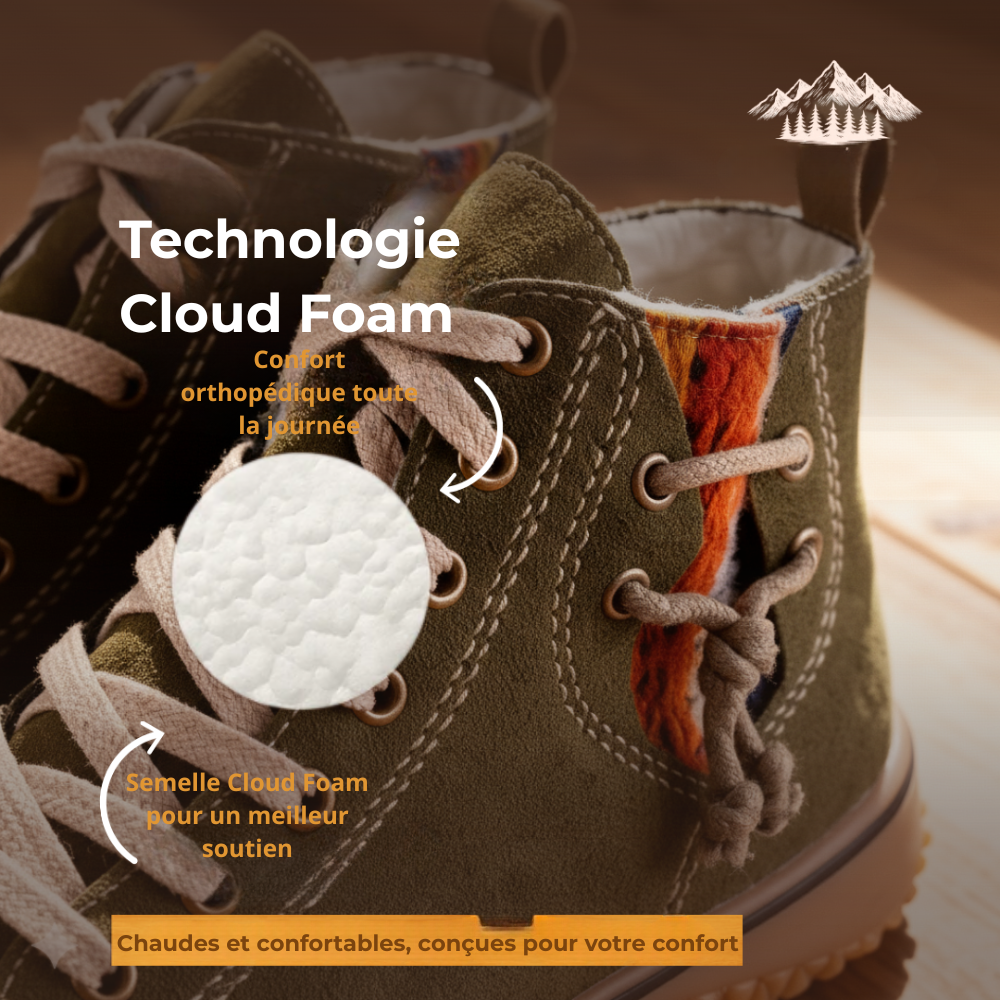 Avec une semelle robuste, des coutures renforcées et une semelle intérieure Cloud Foam, ce n’est pas seulement de la mode: c’est santé et solidité.