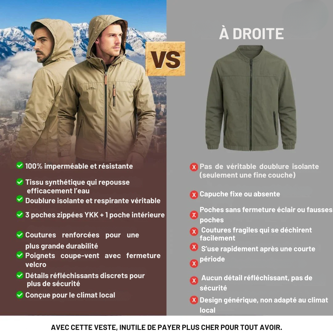 Certifié pour résister aux fortes pluies, il garde la chaleur au sec à l’intérieur et vous protège du vent.