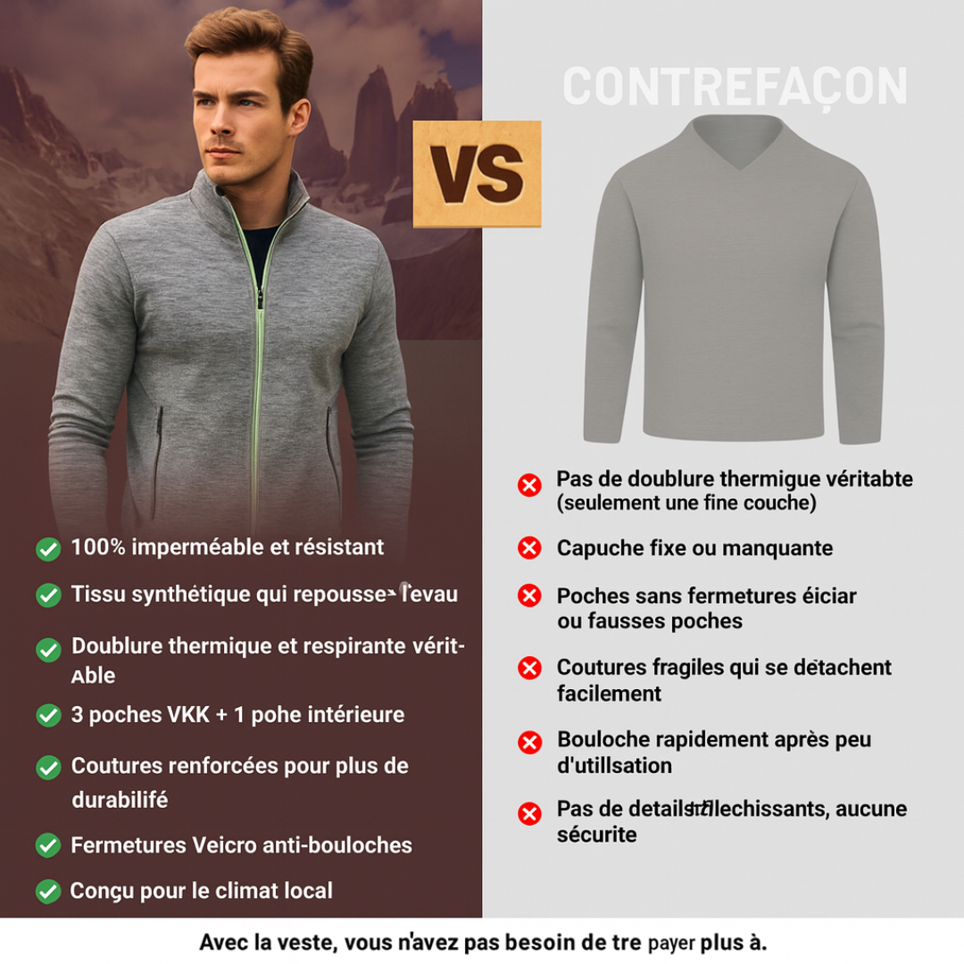 La différence se trouve dans ce que vous ne voyez pas au premier regard : renforts aux zones clés, doubles coutures là où d’autres s’arrêtent. Ce vêtement ne vous garde pas seulement au chaud — il vous soutient. Conçu avec une précision technique et un objectif clair : pour un usage quotidien, pour résister à l’usure du temps, pour ceux qui n’achètent pas seulement des vêtements, mais qui investissent en eux.